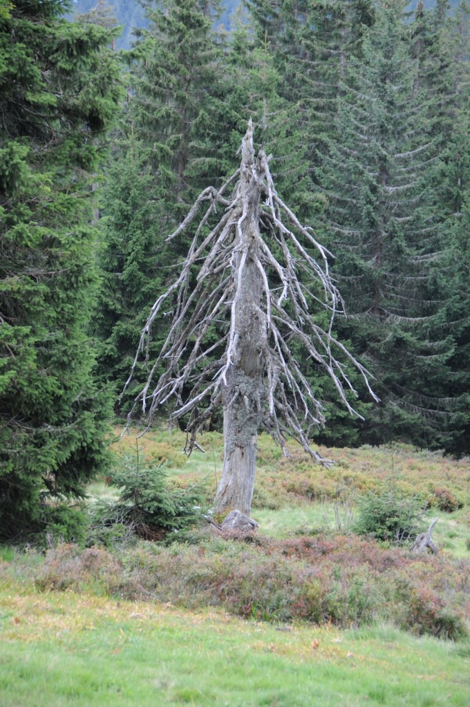 Zum Ende der Sommerferien haben wir mal wieder einen Ausflug in den Bayerischen Wald zum Großen Arber gemacht. Während unserem in Berlin aufgewachsenem Stadtkind kein Weg zu weit ist und er schon im Kindergartenalter selbst lange Wanderungen ohne zu murren absolvierte, ist unser geborenes Landkind doch ein wenig Fußfaul. Da müssen wir immer ein bisschen tricksen und uns ein paar Highlights für den Weg ausdenken, um ihn hinter dem Ofen hervorzulocken. So sind wir zunächst mit der Gondel auf den Berg hinaufgefahren. Erstes Highlight: Check! Dann sind wir in einem ausgetrockneten Flussbett von Stein zu Stein springend wieder bergab gelaufen. Zweites Highlight: Check! Mein rechtes Knie, das gerne einmal Zicken macht, hätte auf dieses Highlight allerdings gerne verzichtet – das nächste mal würde ich die Tour also umdrehen und erst hochkraxeln und dann mit der Bahn wieder runter gondeln. Aber sei es drum, bei dieser Variante konnten wir am Ende der Tour noch auf dem Großen Arbersee Tretbötchen fahren – ein Vergnügen, dass ich seit etwa 30 Jahren nicht mehr hatte. Drittes Highlight: Check!. Für unterwegs habe ich immer gerne die ein oder andere Geschichte parat, die ich erzählen kann, wenn dann doch Langeweile aufkommt. War aber diesmal gar nicht nötig. Dafür erzähl ich die Geschichte von der Arberhexe jetzt einfach euch an diesem sagenhaften Sonntag…
